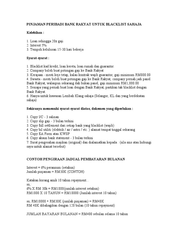 Vpinjaman Peribadi Bank Rakyat Untuk Blacklist Sahaja Pdf